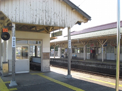 ほかのドアから分散されて降りた客は、編成が短いのもあって、すぐその白い木組みのやぐらに集まってきた。久しぶりの有人駅なんだ。