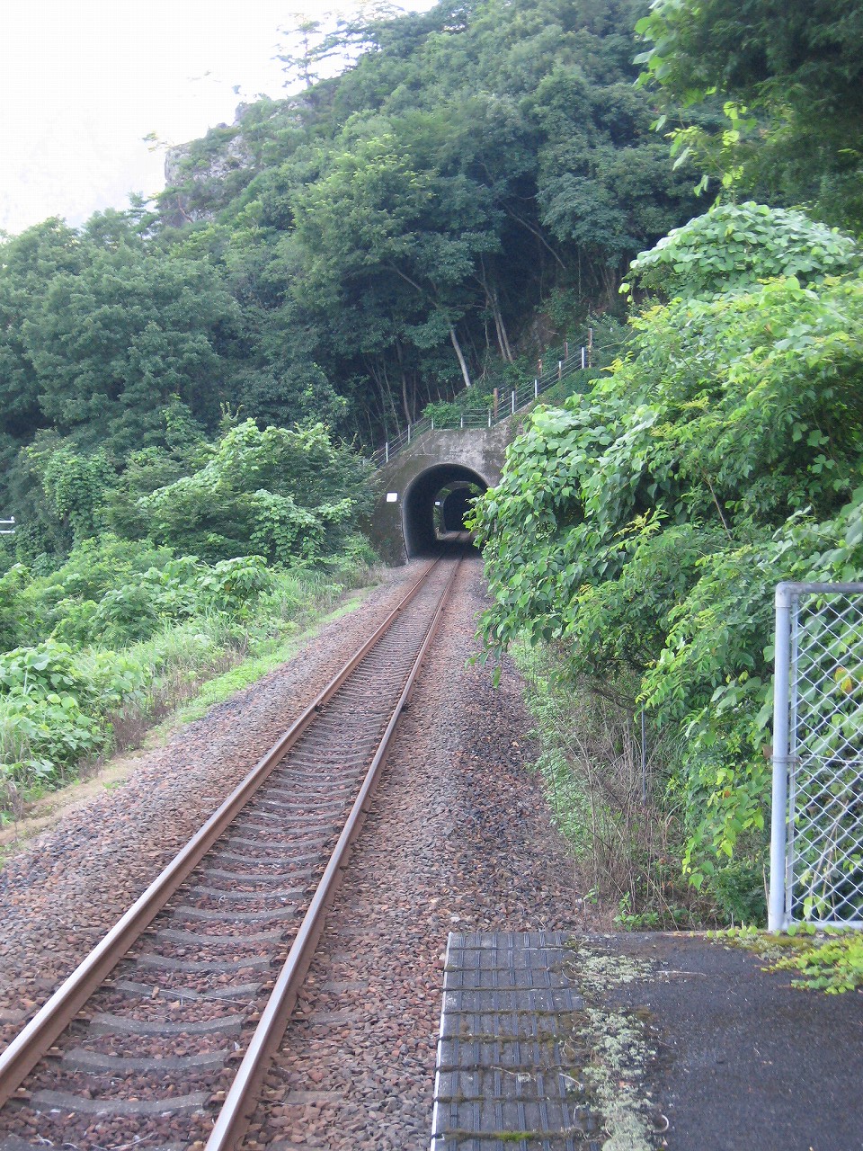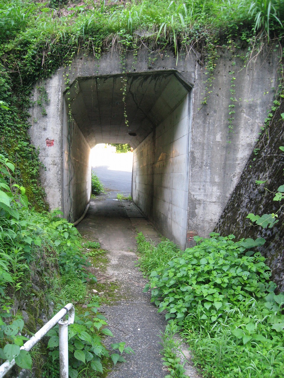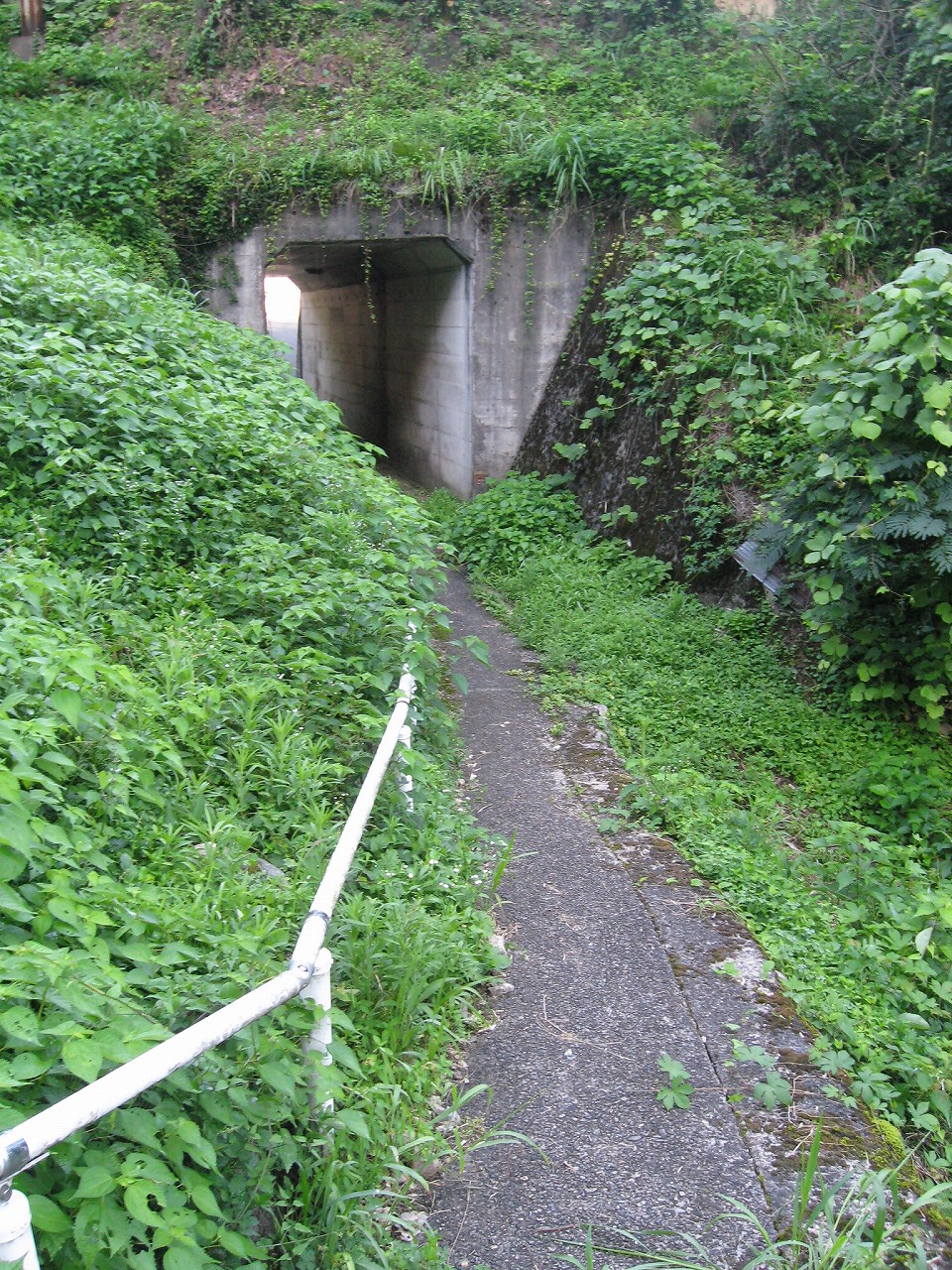 恐れている暇はない、まずはこの駅を倒さないと、と、人道の方を突き進む。つづらおれで、やがて湿っぽい小さなトンネルに行きついた。これはほんと北陸本線の浦本駅のことを思い出さずにはいられない。構図はそっくりである。