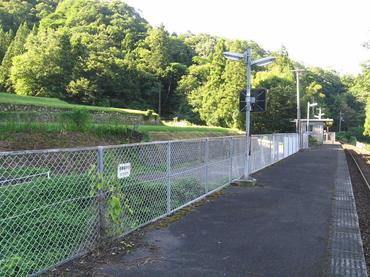 にしても、この駅どっから出るんだろう? ホームから降りる階段はあるが、それからどうやって道路に出るのか… 山ぎりぎりの棚田に細道がうねっているが、まさかあそこを? ほんと不安だらけの駅である。