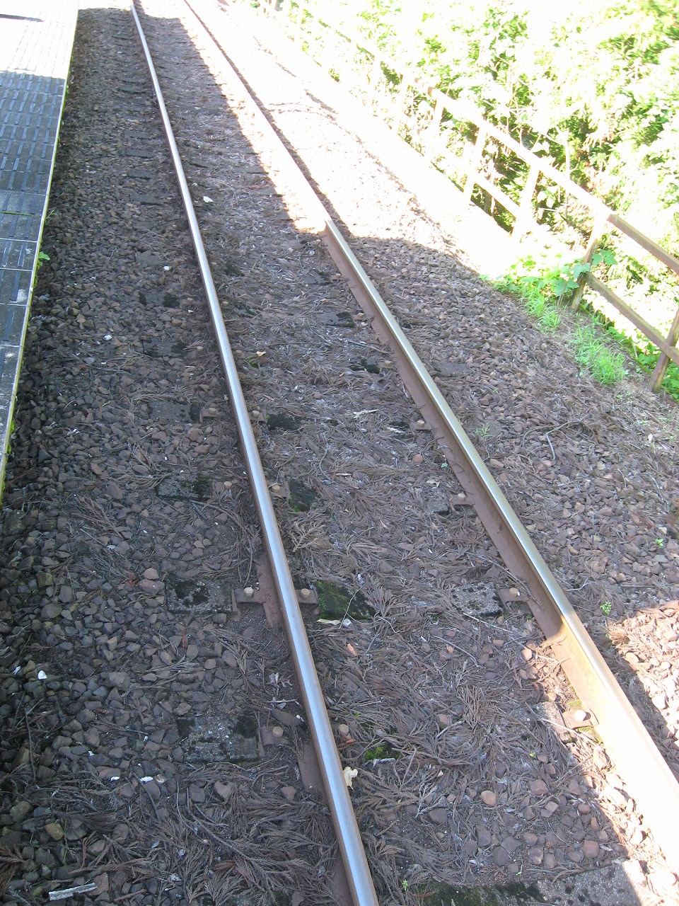 線路の路盤を見ると、苔むしてはいたがコンクリート・マクラギだった。高規格路線の証だ。その力を発揮できないままなのは、なかなかに惜しいことだった。