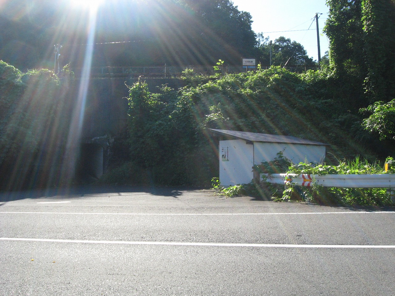 意外にあっけなく国道375号に出た。しかし出たそこには駅を示すものは何もない! 古ぼけた駐輪所と、例のトンネルが口を開けているだけである。ほんとこの駅を使う人はいるのだろうかと… 自分が中高生でここを定期利用していたら、たぶん、毎日、都会に住んでみたいと思い描きながら通学していただろう。だからそれは全然ありだろう。せっかくなんだからいろいろと経験を積まないと。けれども、ある節目で、ここに帰ってくることはある、そんな気も確実にした。特別に何かひどい思い出がないのなら…