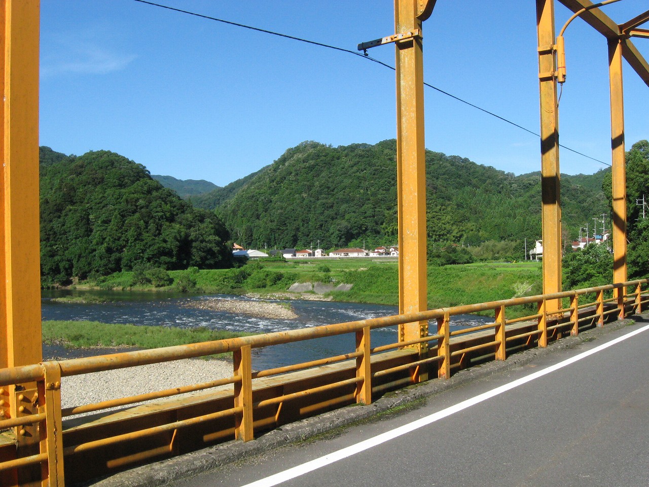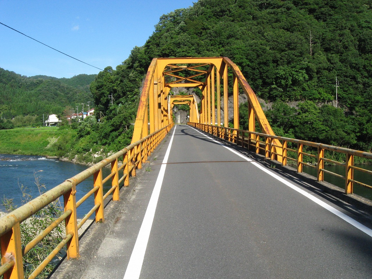 しかし橋も美的なものだった。色褪せてはいたが黄色っぽくて、驚いたことに一車線分くらいしかないのだ。駅から見下ろした橋は太鼓橋で、立派に見えたのになぁ…
