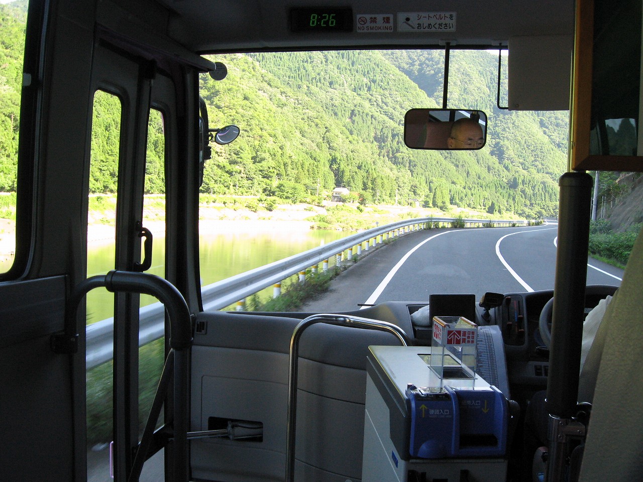 結局バスはバスから視認性の良いところで待つことにした。あの廃屋前で待つのが正しかったとしても、見付けてもらえなければ何の意味もない。だから例のバス停サインの反対側、つまり川側で待ったわけだ。少し早く設定してある自分の時計からして数分遅く、バスの全面がむわっと姿を現した。僕は息を止めながら硬直して手を挙げる。運転士はほんの一瞬不意を突かれた表情をするとすぐに平常心に戻り、バスを川側に横付けした。どでかいバスの車体が僕の眼前に現れる。もしかしたらバスの止まる位置とは違ったかもしれないが、何か言われてももう仕方ない。とにかくこれに乗らなければならないのだ!