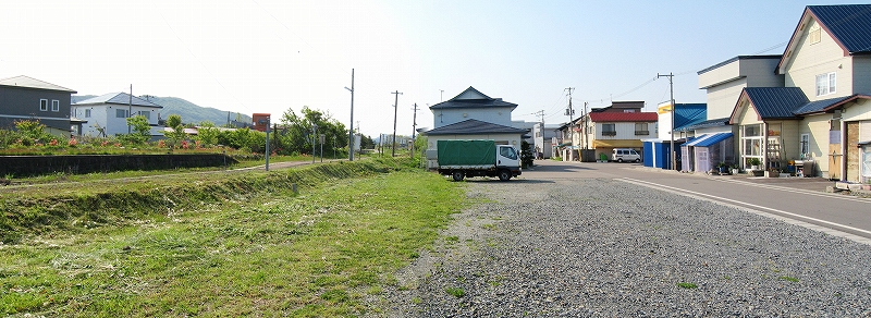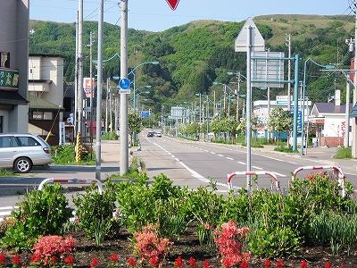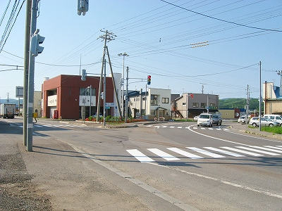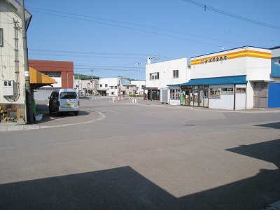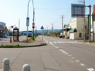 住宅地然とした、ただの敷地の駅前を少し歩いて、大通りへ。上ノ国町街の一端で、廃店舗が多かったものの、現役のも多くあり、役所の建物や車の交通量、天気のいいこともあいまって、「久しぶりに街を見られたぞ」。やはり木古内からここまでの、山間区間の心理的影響が強い。ここには自動販売機もあるし、コンビニまであったのだから、別世界だろう。