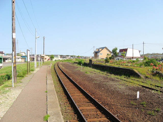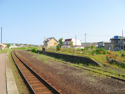 そうして入ってくる人を交わしつつ、最後の降車客としてどうにか降りる。何ものにも喩えがたい清澄な空気と仄かな潮香が、ここの大気すべてで、街をすっぽり包みこんでいた。髪をすべて剃って、目を見開かせるような爽快さに、力が抜けていった。街があるといっても構内は広漠とした趣きで、土のホームや路盤を、短い草がすっかり覆って丘をなしている。北海道は何でもないところまでこんなきれいな丘にしようとする性質があるなんていいたくなった。