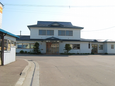 日本海の果てを渡ってくる冷たく心地よい風を肌で絶えず味わいながら、トタンで和風の屋根を葺いた商工会館は道南を想わせる。その内部に待合室が窮屈そうに組みこんであり、閉鎖された窓口は商工会とは反対側だったから、独立した出札をやっていたようだ。たいていは商工会館や観光協会の事務所とつなげるから珍しかった。しかしこんな作りで早く窓口営業終了の引き金になっていたりして。