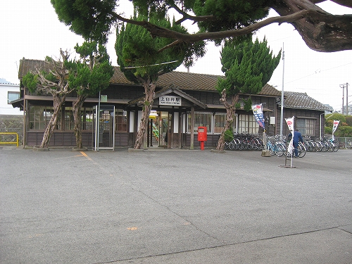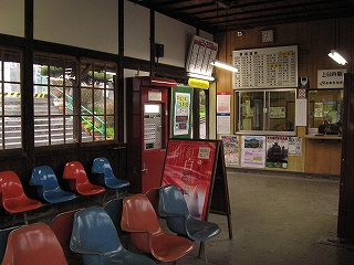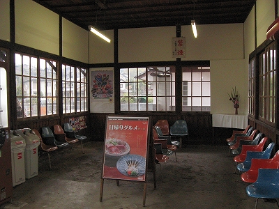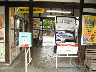 そういうわけで建物の外観は第一級の木造建築の駅といわれていそうなもので、きちっと張った瓦屋根、華奢で大事にされなければ割れてしまうような薄いがガラス入った木格子のある駅だった。保存がよく驚嘆した。人の水準の高くないと、こうもいかない。