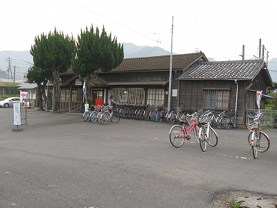 駅舎の中もすっかり濃い木の色が立ち込めていて、そんな中に場違いに青赤の椅子がならべてあるのが色映えしていて強烈に九州くさかった。窓のガラスは薄く、サッシすら入れず木枠を残している。そして自動販売機が外ではなく中に置かれ木の色に合わせてあるのを見てやっと、ここは保存するよう努力しているところなんだと気づいた。