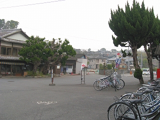 駅横の駐車場。フェンスの前はバス転回場につき駐車禁止とのことだった。