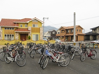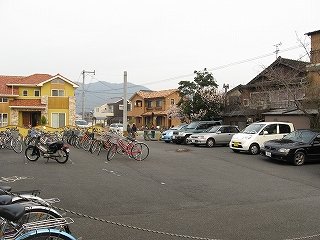 駐輪場。駅前付近ではあの2件の欧風家屋が異彩を放ち切っていた。