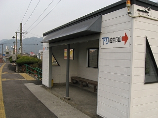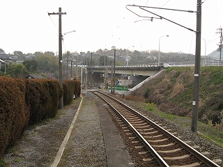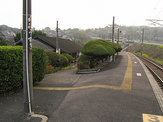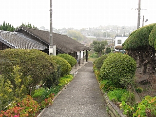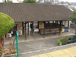ホームは堰堤上にあるため、緑の斜面やつつじの植え込みなどが駅前広場と親しい関係にあった。