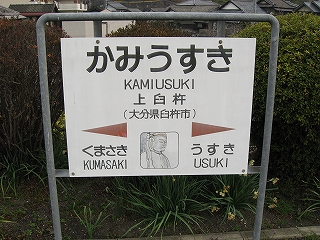 このタイプの駅名標・名所案内板もあった。イラストは臼杵磨崖仏なのだろう。