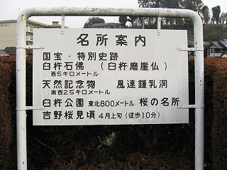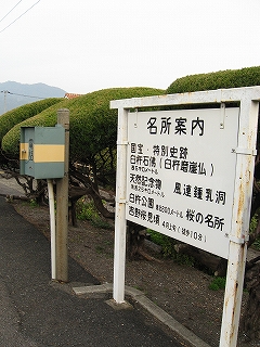 古い名所案内板。磨崖仏や鍾乳洞が案内されていて辺境が窺える。