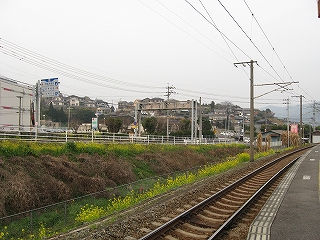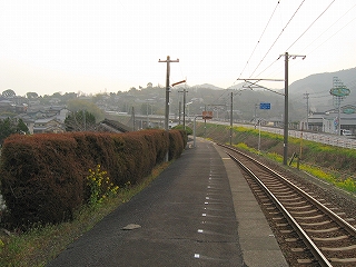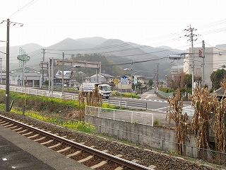 足元にうすら寒さを感じつつも、私は眠りを厚かましくも貪っていたようだった。けっこうな山を抜けて、熊崎というところに着く。山を抜けちゃった。降りる駅までもうすぐになってしまった。落ち着かないのはそれだけでなく、平けたところに出たからというのもあった。そしてそういう山を抜けたこのところにも、こうして街があるのだった。今まさに起き出したばかりというような街が…。