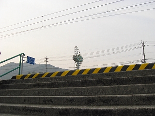 階段をよっこいせと上がるときの風景。あの塔は私、ボーリング場だと思ったのだが、