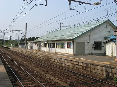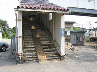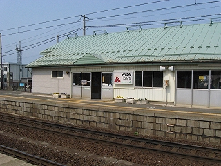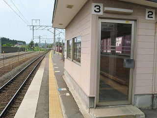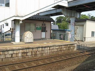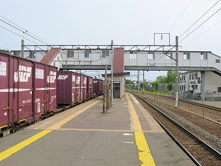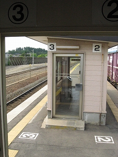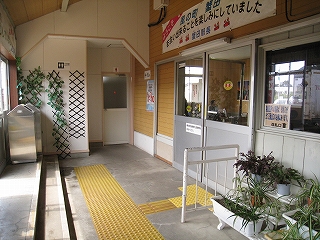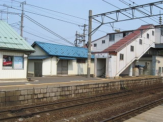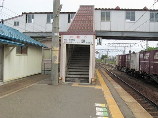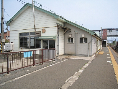 1番線ホームにて。前玄関がせり出している。