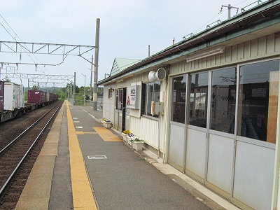 知内駅も通過。