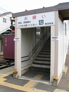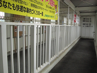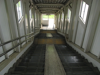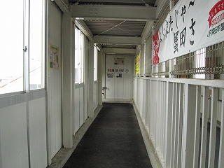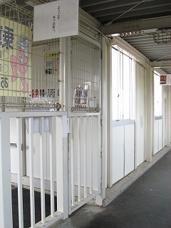 跨線橋内にて。自由通路とは柵一本。乗務員専用のカギ付き扉があった。