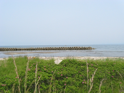 ほんとにちょっとした街があるきりだが、ここまで蝦夷の地とは違うものかと思うくらい、街に、内地の湿りというものが感じられた。一つ一つ建物がこじんまりしていて、道が狭めだった。ここら一帯は、外ヶ浜と呼ばれるそうで、砂地の湊が かすかにミルクを渦に刷いたような空色のもと、のどやかに光っている。気温も天蓋のその白い濁りも、自分のよく知っている内地の初夏で、峻険な海色もなく、四日間滞在した北海道とはその様相をはっきりと異にしていて、たおやかでなまめかしい郷愁を誘われた。