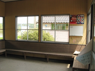 薄曇がかかっているものの陽射しを避けたくなるくらいで、日陰の駅舎の中に入ると、無人で、中は荒れていた。椅子の木の溝には虫が溜まり、隅には蜘蛛の巣が張っている。ベニヤの壁も汚されていた。もはや七尾線時代の名誉はなかった。影なここにいると、戸の向こうの、日が差している海岸前の平地を撫でる風が這入り込んで、ひたすら私を誘っていた。
