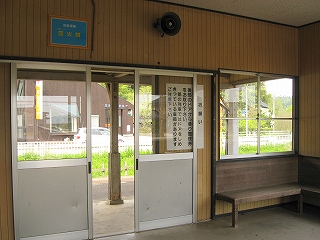 駅舎内にて。出札口。けっこう荒れている。