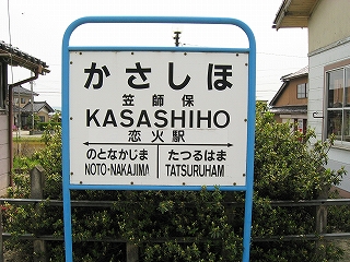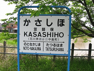 一両の列車は、鈍い海のそばの水田を、眠たげに、走りがいなさそうに、なんとなしに走る。しかしいちど、凪いだ湾を見せつけるようにカーブし、私の眼を見開かせた。君は能登に来て列車に乗っているんだ、と少しばかしは教えてくれたようだった。それから少しと経たず、笠師保駅に着いた。これまでの車窓からほどほどに海辺なのがわかっていた。