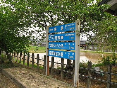 名所案内板。カキの養殖はよく知られている。