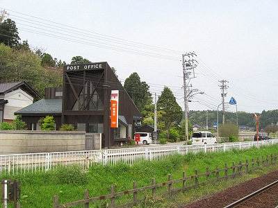 笠師保郵便局。駅から行くにはやや遠回りをしないといけない。