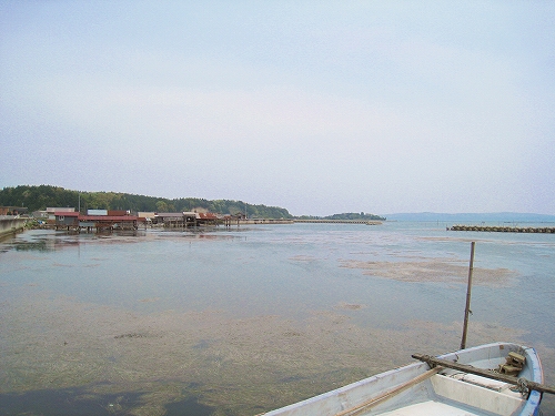 海に出ると、海面は少しも波立たずして青く、あちこちに枯れ草の塊などのごみが浮いていた。弱い風に吹かれて、船が音も立てずに揺れている。牡蠣養殖をしているくらいだから、その静けさはもっともなものだった。育てたものを取るのだから、畑のような海だ。沿道の賑わいはない海沿いの二車線の道はそこそこ自動車が走っていたのに、いちど途切れると、しばらくはまったくは来なかった。帰りは左右を確認しなくても渡れて、それでここの交通量はよくわからないものとなった。