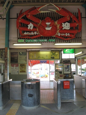 特急はまかぜの表示がいくつかホームでは見られたが、お昼はやはり ゆるい観光客らのためのものだろう。冬は混み合いが凄いともっばらで、カニの置き物があるが、今はしだいに減っている気がしてならなかった。私もそんな時期に来て、定番の楽しみ方をしてみたいな。