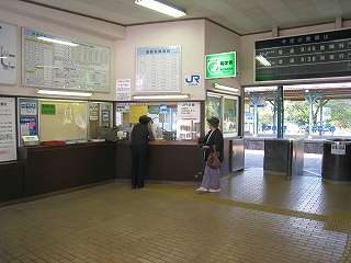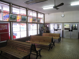 偉そうな感じで丸みを帯び、燻したような金属の改札台を過ぎて中に入ったが、コンコースは狭くすぐ外に通じていて、駅らしいところは少なかった。昔流に改札開始の呼びかけがあるまでは待合室に入るのだろう。
