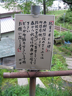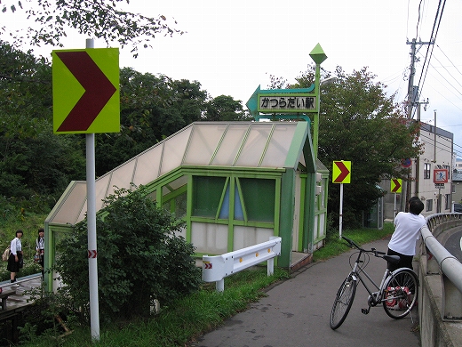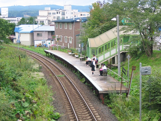 全員定期券の中、私だけ企画切符を見せたら、何か怪訝だ。あたりは土の掘割で、強引に簡易駅を作ったところ。往来のせわしない道路上にしつらえた待合所もメルヘンで、下り坂の先に網走市街と海が見て取れた。坂を登っていくと、いわゆる山の手の住宅街だろう。駅を過ぎていく徒歩の高校生もおり、みんな駅に来るわけでもなく。