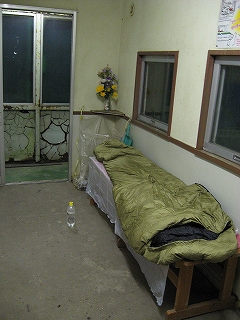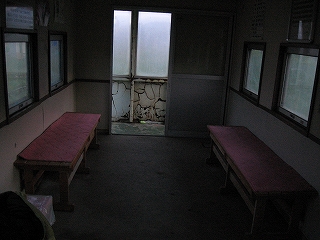 「間違えた、えらいことだ。いや、降りる駅を間違えたわけじゃない。そうじゃない。ここは寝るような駅じゃないということだ。でも選択の余地はない。ここで一晩待つしか選択の余地はない。なにか救いはあるかな、まず長椅子はある。三つもあるぞ。表面をよく見てみよう。確かに絨毯は敷いてくれているが、虫とシミだらけだ。だが大丈夫、シュラフの下に敷くシートを持ってきている。寝られるよな? まったく寝られないというわけではないよな? むやみに絶望するのはよくない。少し掃除すればなんとかなる。でもここが寝る駅じゃないっていうのはなんでだ。そう、何だこのアンモニアのにおいは?! この匂いの中寝るのはまるで便所で寝るようなもんだぞ。トイレが併設されているわけでもない。トイレがあるならわざわざ久根別で水なんかあらかじめ汲んでこなかったさ。まあしかしひどい待合室だな。床も虫だらけ、ゴミだらけ、汚れきっている。」