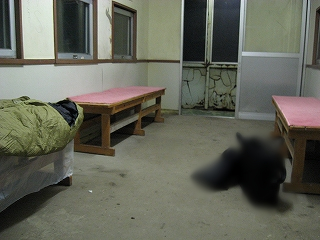 珍しくフラッシュをたいて撮影。出入口の電灯も切れている。
