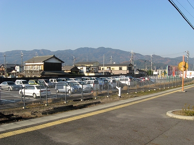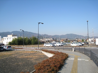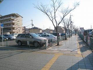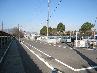 右:奥が駅入口。こちらは駐輪所と駐車場のエリアになる。