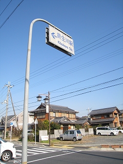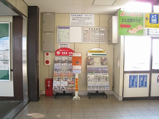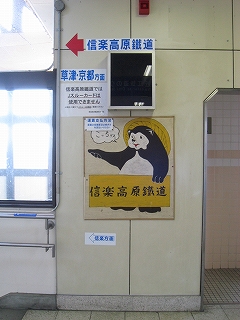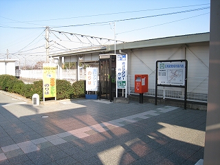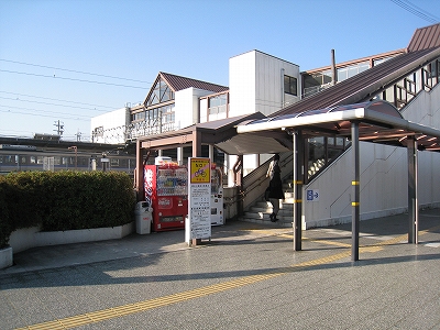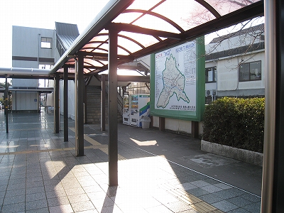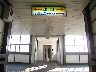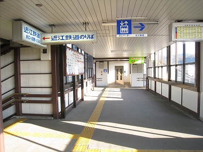 近江鉄道風の案内板。右手乗り換え、南口(裏口)。