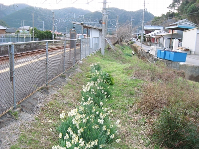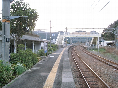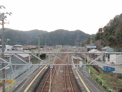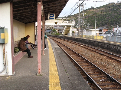 本当に冬なんだな、と思いながら、また数段下りて駅舎に向かう。このパターンに例外がないという誇張を胸に抱きながら、紀伊半島の旅も足にすっかりついているのを感じようとする。それは今は山の中にあっても、とにかくまた暖かな南海を見られるという気持ちを大事にしたかったからかもしれなかった。