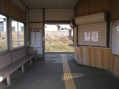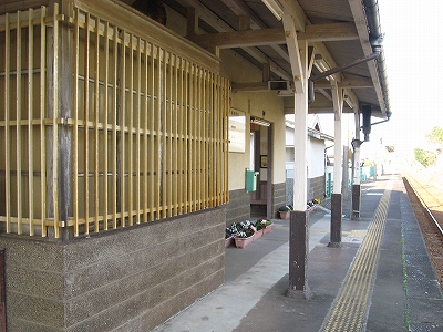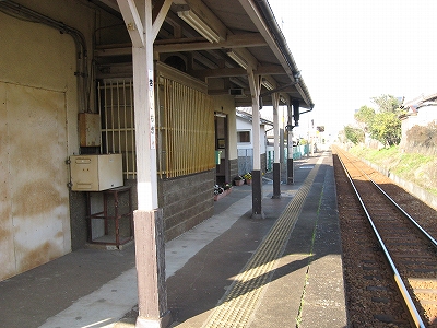 一両の列車を制御する運転士は停車後なぜかやたら朗らかに私を解放した。集落型の駅だが、内陸の田畑の見晴らしが少しあり、静かな道から駅舎を眺めてみても村の駅という感じがする。妻屋根だが重厚ではなく、簡素な直方体のモルタルづくり、似たような駅が付近にいくつかある。開業当初のものだ。