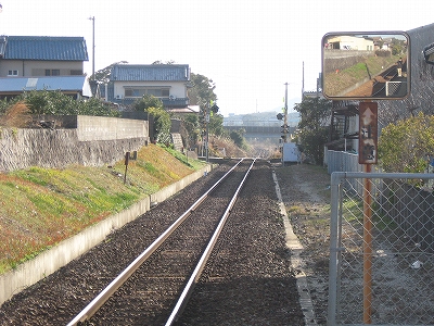 しかし彼らが去ると、小さな駅は私を慰めてくれた。ただ単に私を南紀を冬に彷徨う旅行者にしてくれた。様々な海あり、時間あり、そして村もある。思い返せば和歌山市外からずっと廻ってきたのだった。ただ単にそういうことだ。眼前の庭木の蜜柑がまぶしい。接近装置が木造舎の壁に響く。直線のずっと先を窺うと、列車の頭が揺らめいて見えた。一両の列車はそのまま直線をやってきて、すっと我がホームに横付けする。少しバスのようである。運転士は停止位置に注意を払ってばかりいた。こんな瑣末な駅でも! 車体にはオレンジに緑のラインをほそく引いていて、明るかった。