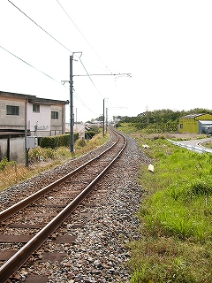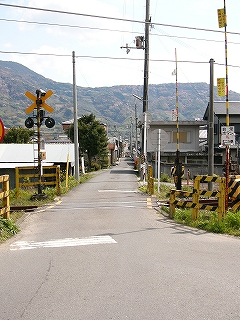 駅すぐ近くの踏切と紀ノ川へ伸びる道を見て。