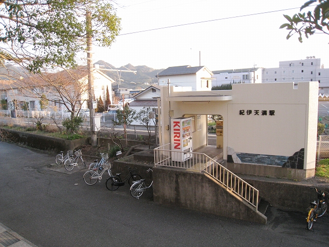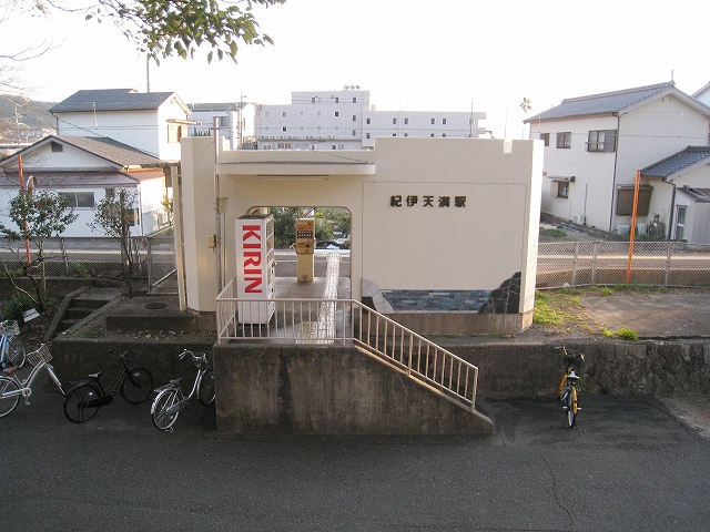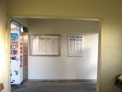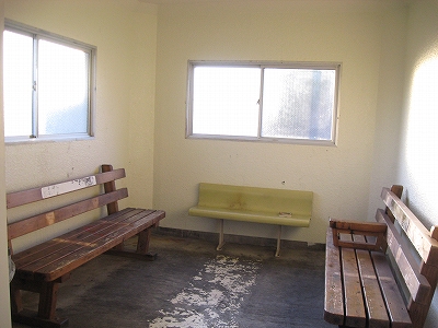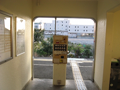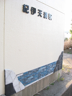 朝は本数も多く、ここは駅間も短い。今日はのんびりした旅はもう終わりだよ、と告げられている気がする。勝浦と新宮が私たちを待っているのだ。息はとびきり白いが朝日はこってりした冷たい銅色、今日も南紀の晴れで、車内ばかりはいかにも忙しいさなからしく、私もさっさと小さい石舞台に降ろされた。ちょこちょこと歩けばカプセルの駅舎の中に体は転げ入ってしまう。あたりはそこに駅があると思っていないそっぽを向いた集落だ。高校生の利用が多いから中は荒れていたが、どう破壊しようとしてもこのコンクリートの小さな塊にはかなわなさそうだ。正面に荒磯を描いてあるが、まさに波に襲われてもこれだけは残ってしまいそうなんて、吐息白く躍動する体の私は思う。櫛目鏝で波模様を付け青い釉薬を塗って焼成したタイルと、剥がした岩でできたその意匠は古さがあるが、おもいのほかきれいに保存されていて、私の所有なら今ではこんなことしないからと言って消したがるのだが、きれいに保たれているというのはなおその価値を見出している人がいるのを思わせ、一目置きたくなる。当局の鉄道部あたりが、外観は塗装して維持する方針云々、これはこれで変えなくてよし、そんなことを思い描く。学生らの狼藉は、煙草の痕をつけたり、長椅子の脇息を取っ払ったりだ。あと、ぼろぼろの券売機もさらにひどい目に遭っていて、よくこんなものが動いているなと思う。