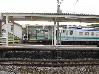 家々も世は捨てたような山あいの乗降台は芽吹きの木々にどうにか救われていたようで、そこでは確かに道南深山の各駅の中で最も孤独を極めたものの、多少は軽やかなな気持ちで、汽笛棚引かせてきた汽車に乗ることができた。後は木古内に向かうだけだった。