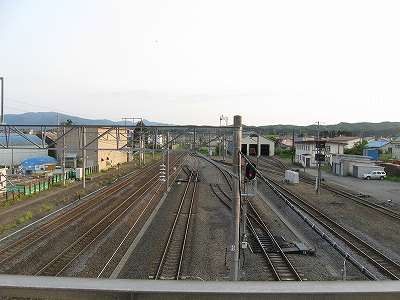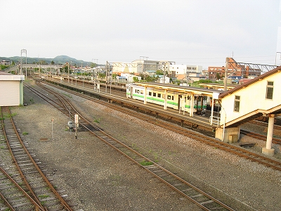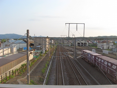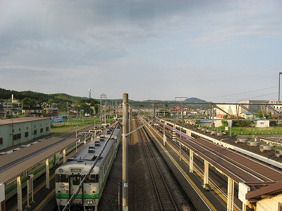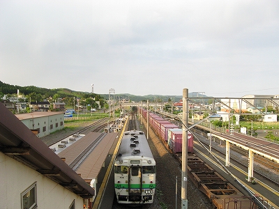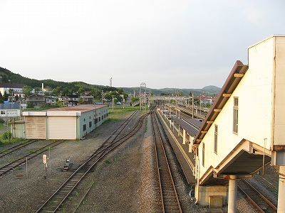 裏から見た木古内駅。