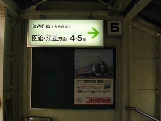 そういう風をきっちり避ける、透明なパネルに囲われ、改札には自動ドアまで付けた寒冷地仕様の狭通路においては、江差や函館だけが記されている灯りはじめた案内板を見上げると、海峡線開通するものの北海道で閉じた世界に今自分がいることを揺るぎもせぬしいんとした空気を媒介として感じられ、静かなる充足心を得られた。