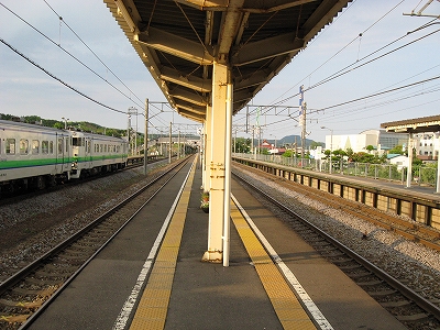 この駅に着いたとき、五十くらいのお爺さんが仕舞支度に忙しい運転士の知らないうちに江差から木古内の乗車券を運賃箱の上に置いて、そそくさと改札へ行ってしまった。それを私が手に取るとまずいので、その人の後を付いていくことにし、証人になる必要があるだろうかと考えていたが、その人が改札まで来て「渡してきました」と言うと、不思議な顔をされつつもはいと通されたので、力が抜けて、独りでの来道して丸一日後に迎えた緊張させるような日暮れの、身を締まらせるような冷たい夕風に全身で当たりながらも、体を思いのままとろかしてみたいと思うようにもなった。