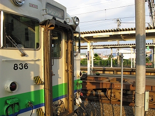 谷地から風景はどんどん開け、広々とさえ感じられる木古内に間もなく近づくと、湿り気のある心細い谷下りも終わることになり、車内は赤銅色に明るくなった。