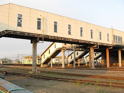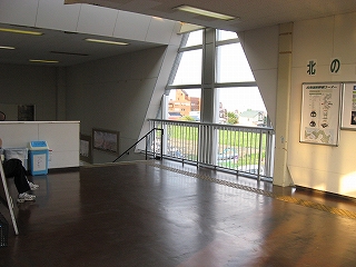 さきほどの通路は正式には木古内南北歩道連絡橋というらしく、「スカイロードきこない」と名付けられていた。名前はきれいだが設備は駅の一部という感じ。昭和62年竣工という。