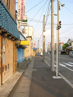 こうしてここに来るまでは、駅前にバスがしきりに発着する様子や、海峡線開通で栄えているのを想像したが、実際には変貌は遂げず、肩透かしなのは旅人というより地元か。 こじんまりした真四角の店が 同じ大きさでえんえん連なっていて、純情な町の相貌だった。こうして簡単には変わらないところに暴風に撓むような勁さや、来訪者少なき道南の秘境海岸が保たれているのも想われて、惹きつけられるところがあった。