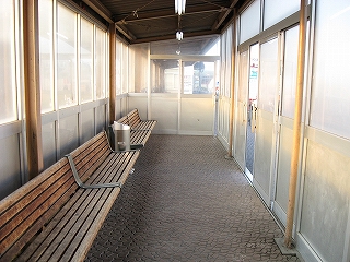 改札外通路にて。駅前方。北海道の駅でよく見る椅子が並んでいる。
