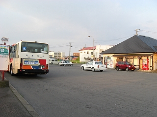 駅前広場全景。複数のバスが転回・発着できるようにと広い。